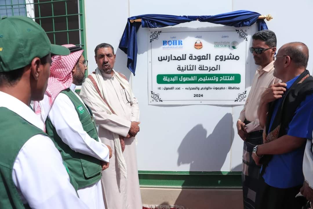 تسليم 14 فصلا دراسيا بديلا بوادي حضرموت مع الحقيبة المدرسية .