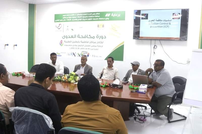 بدء الدورة التدريبية حول مكافحة العدوى لكادر مراكز فاطمة بابطين الطبية لرعاية مرضى الفشل الكلوي بحضرموت الوادي .