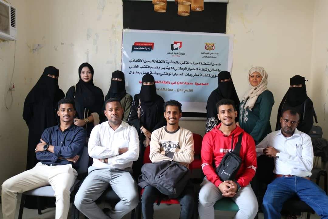 نظم المكتب الفني لتنفيذ مخرجات الحوار الوطني ورشتين نقاشتين في محافظة عدن.وناقشت الورشة الأولى التي أُقيمت
