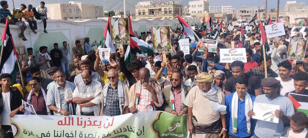 ابناء سقطرى ينظمون مظاهرات جماهيرية حاشدة تنديدا بجرائم الاحتلال في غزة .