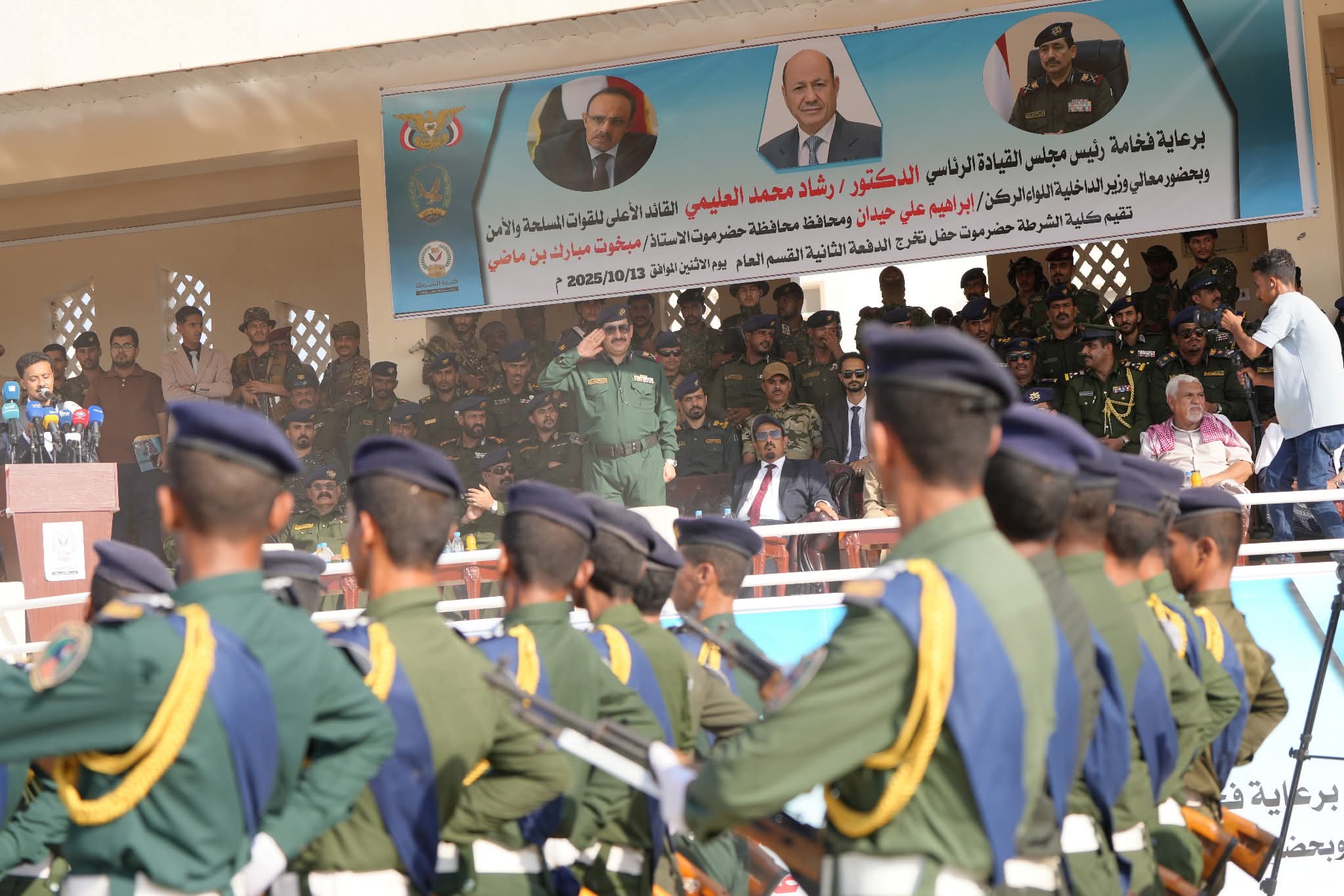 وزير الداخلية ومحافظ حضرموت يشهدان حفل تخرّج الدفعة الثانية من كلية الشرطة بالمكلا..