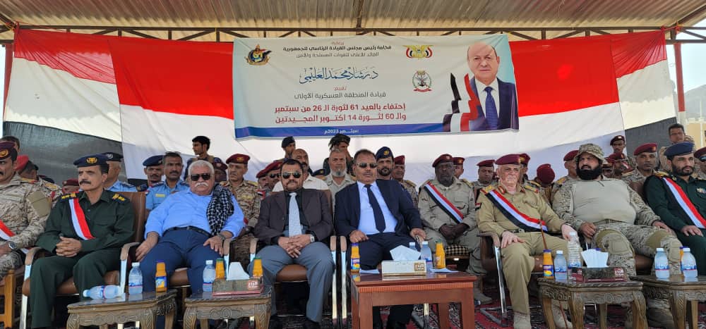 بحضور السلطة المحلية والعسكرية والامنية المنطقة العسكرية الأولى تحتفل بأعياد ذكرى ثورتي سبتمبر واكتوبر المجيدتين