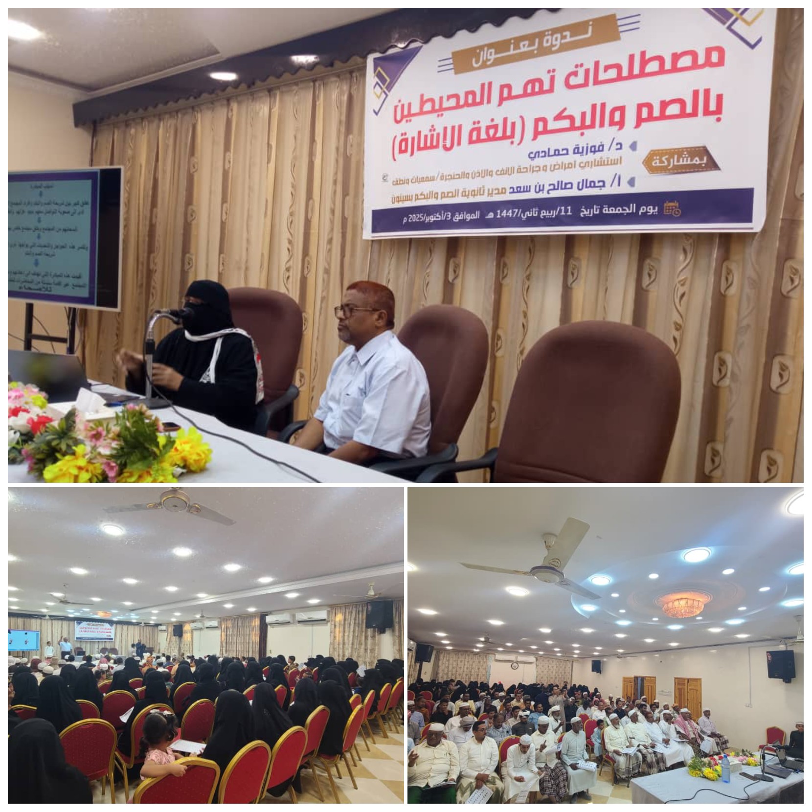 أقامت مبادرة مجتمعية بمدينة سيئون عصر اليوم الجمعة ندوة علمية بعنوان "مصطلحات تهم المحيطين بالصم والبكم