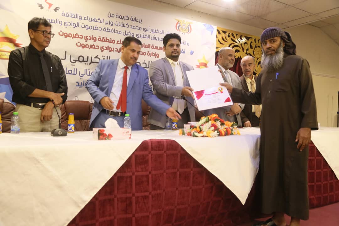 كرّمت المؤسسة العامة للكهرباء وادارة محطات التوليد بوادي حضرموت، اليوم، الموظفين الحاصلين على لقب الموظف