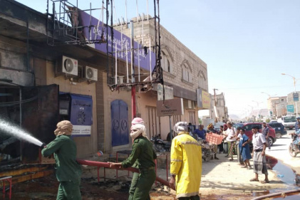 أخمدت طواقم الدفاع المدني في مدينة تريم بمحافظة حضرموت صباح اليوم النيران التي نشبت في احد محلات صناعة