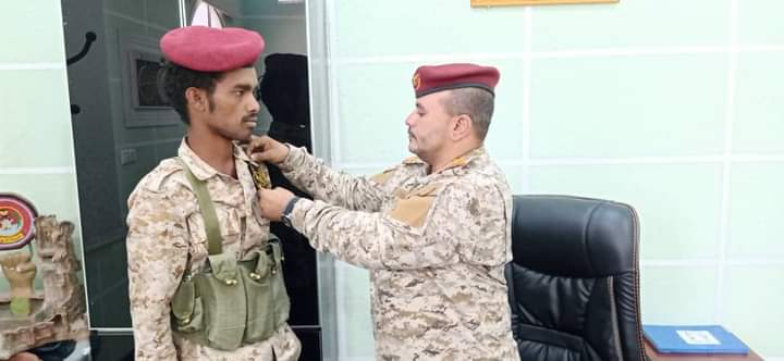 قلد قائد اللواء 101شرطة جوية العميد ركن/ سعيد عبيد لحمر الجنود المشاركين بدورة الصاعقة من أفراد اللواء "وسام