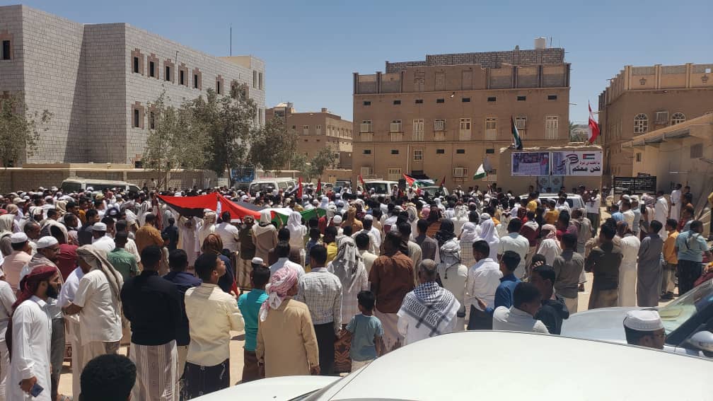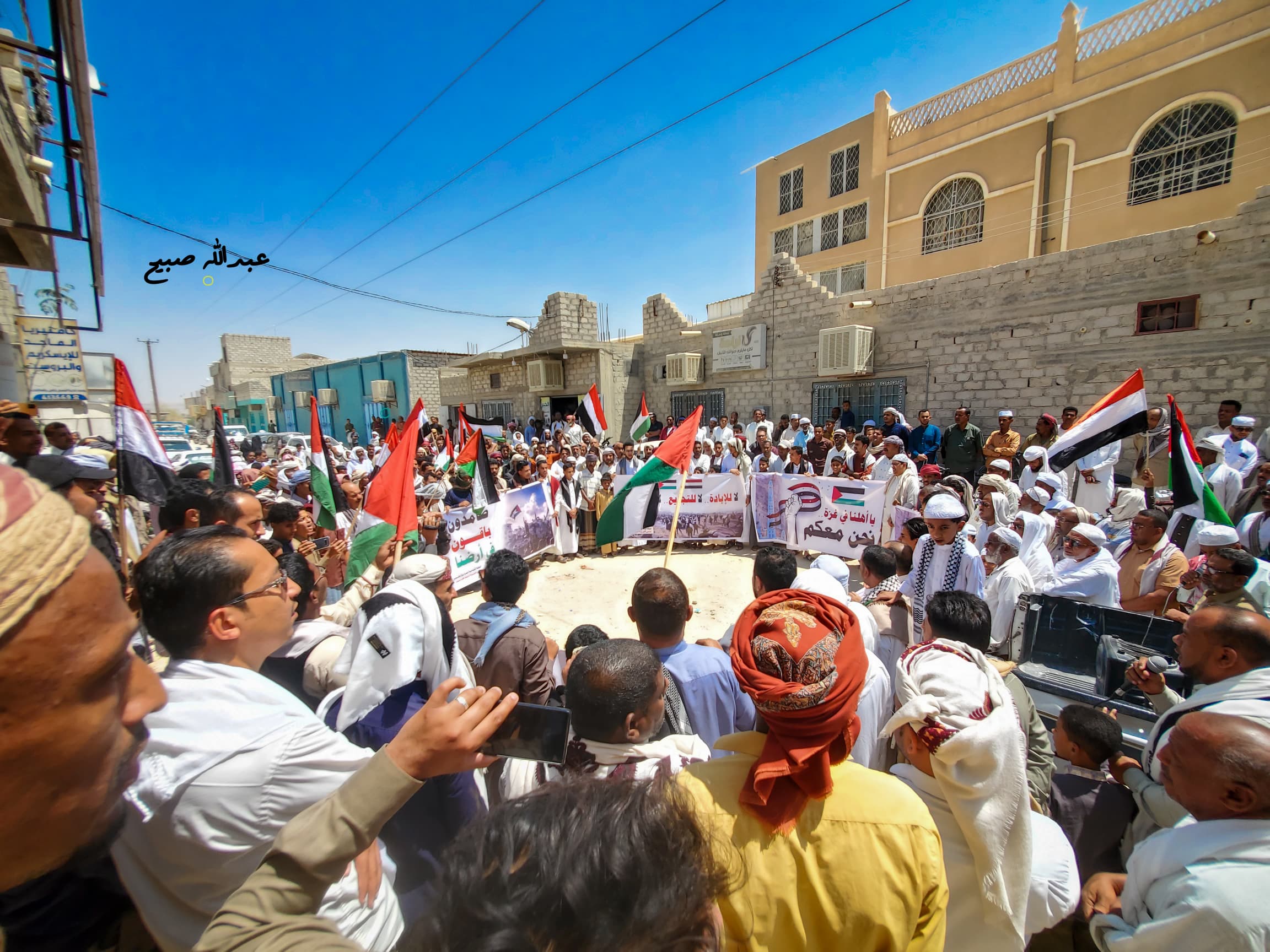 أهالي تريم حضرموت يحتشدون تضامنا مع غزة ويدعون لوقف العدوان.