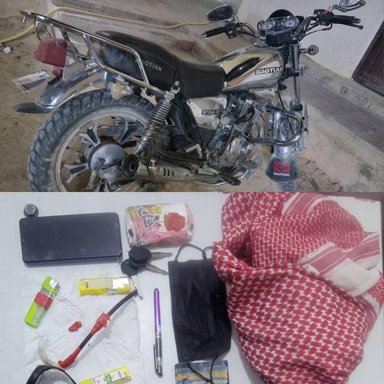 شرطة مديرية حورة وادي العين بالتعاون مع الجيش تضبط متهماً بسرقة دراجة نارية وحيازته مواد مخدرة