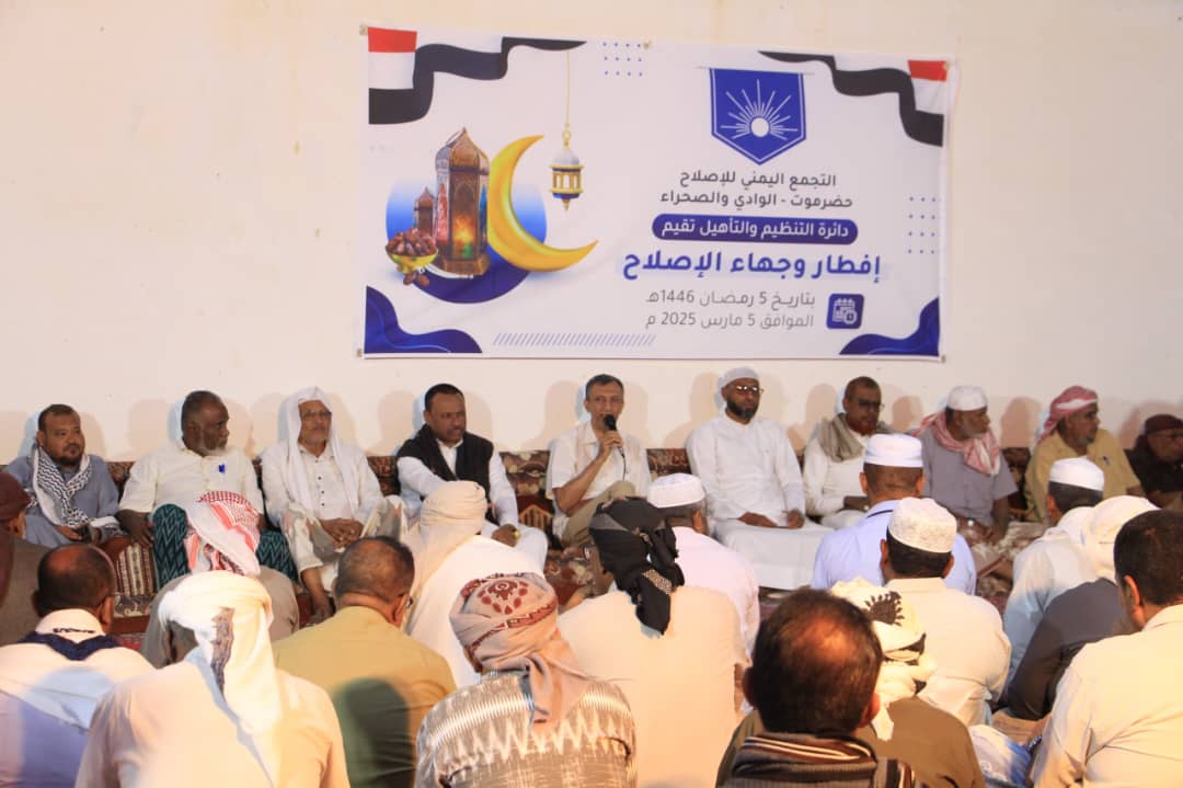 نظم المكتب التنفيذي للتجمع اليمني للإصلاح بوادي وصحراء حضرموت، مأدبة إفطار في مدينة سيئون، جمعت وجهاء