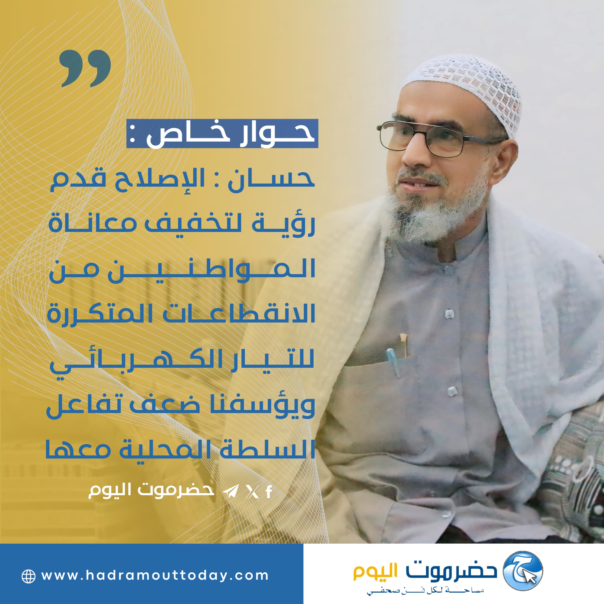 في حوار خاص : حسان " الإصلاح قدم رؤية لتخفيف معاناة المواطنين من الانقطاعات المتكررة للتيار الكهربائي ويؤسفنا ضعف تفاعل السلطة المحلية معها .