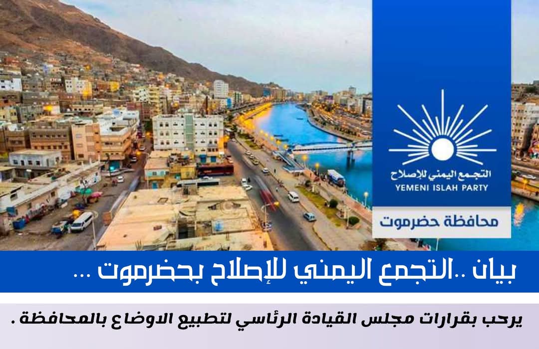 إصلاح حضرموت يرحب بقرارات مجلس القيادة الرئاسي لتطبيع الأوضاع في المحافظة