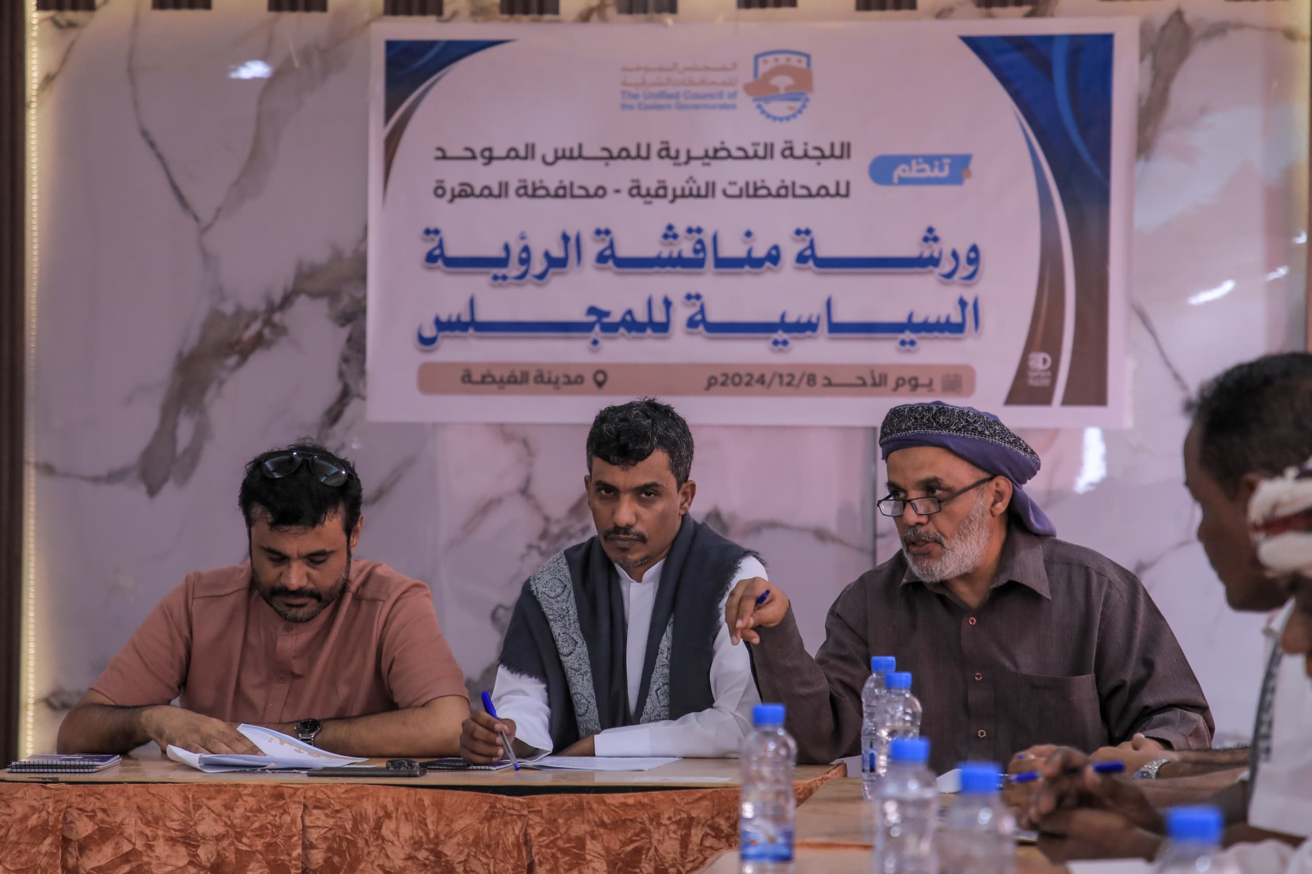 أقامت اللجنة التحضيرية للمجلس الموحد للمحافظات الشرقية في محافظة المهرة ورشة نقاشية صباح اليوم الأحد في