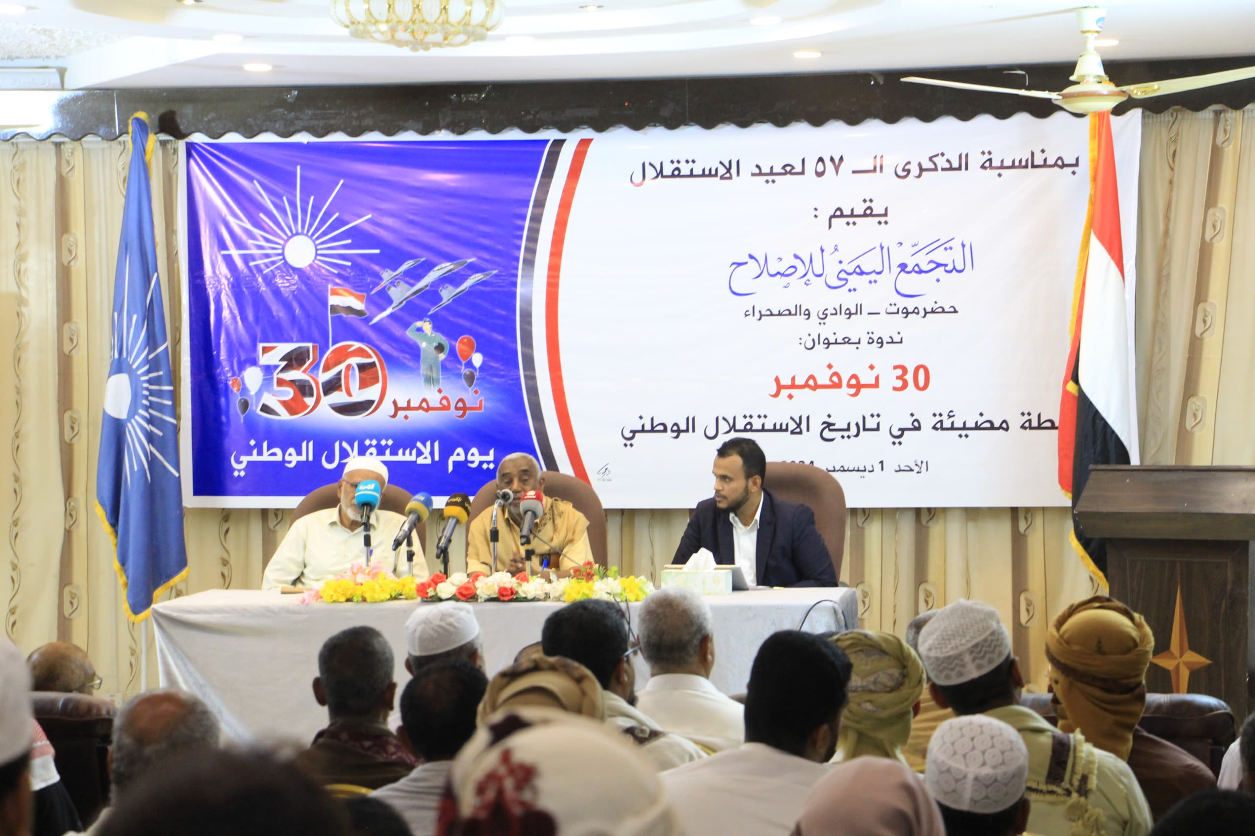 إصلاح وادي حضرموت ينظم ندوة في سيئون بمناسبة الذكرى الـ57 للاستقلال الوطني.