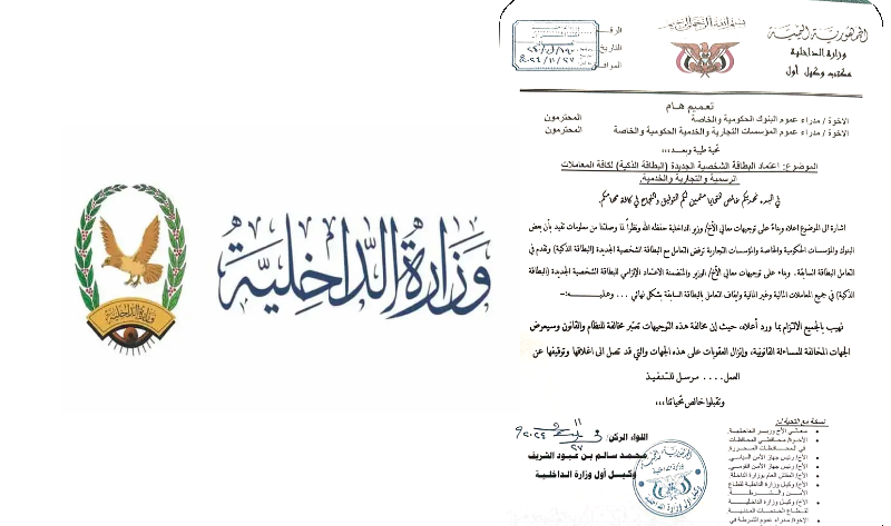 وجهت وزارة الداخلية مدراء عموم البنوك الحكومية والخاصة مدراء عموم المؤسسات التجارية والخدمية الحكومية