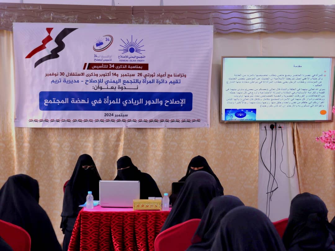 دائرة المرأة بإصلاح تريم تنظم ندوة الإصلاح.. والدور الريادي للمرأة في نهضة المجتمع
