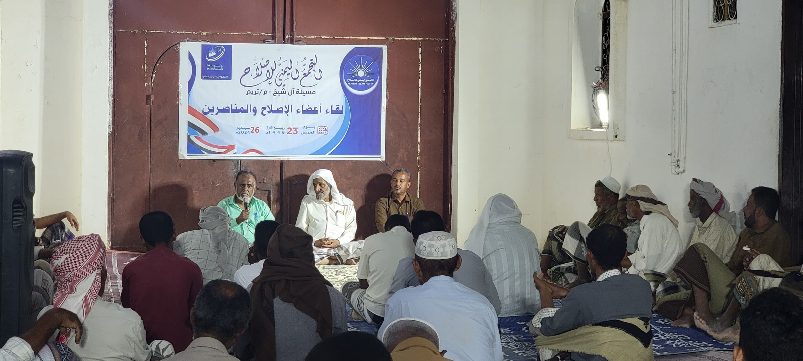حزب الإصلاح يعقد لقاء دوريا بالأعضاء والمناصرين في مسيلة آل شيخ بمديرية تريم