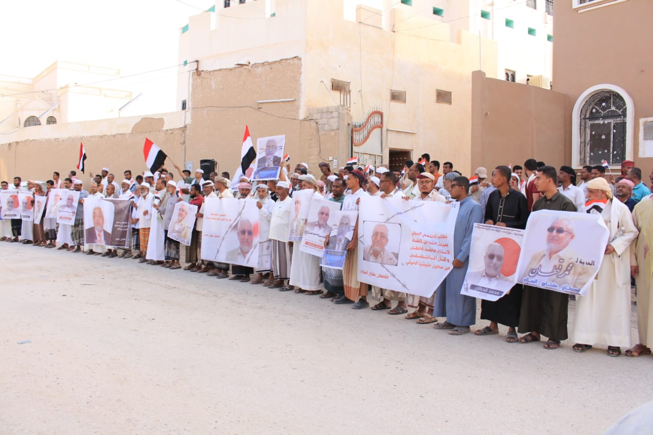 وقفة بحضرموت تدعو لإطلاق قحطان وتدين التماهي مع جريمة إخفائه من قبل مليشيا الحوثي الارهابية