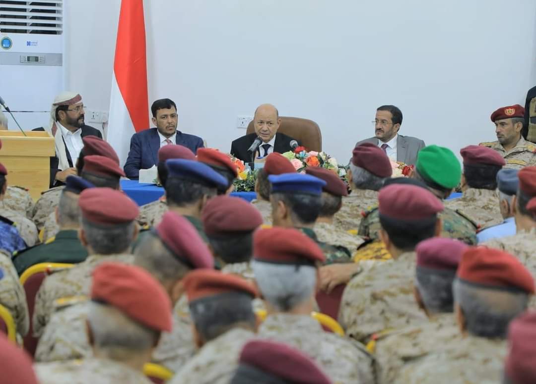 عقد فخامة الرئيس الدكتور رشاد محمد العليمي، رئيس مجلس القيادة الرئاسي، القائد الأعلى للقوات المسلحة، ومعه