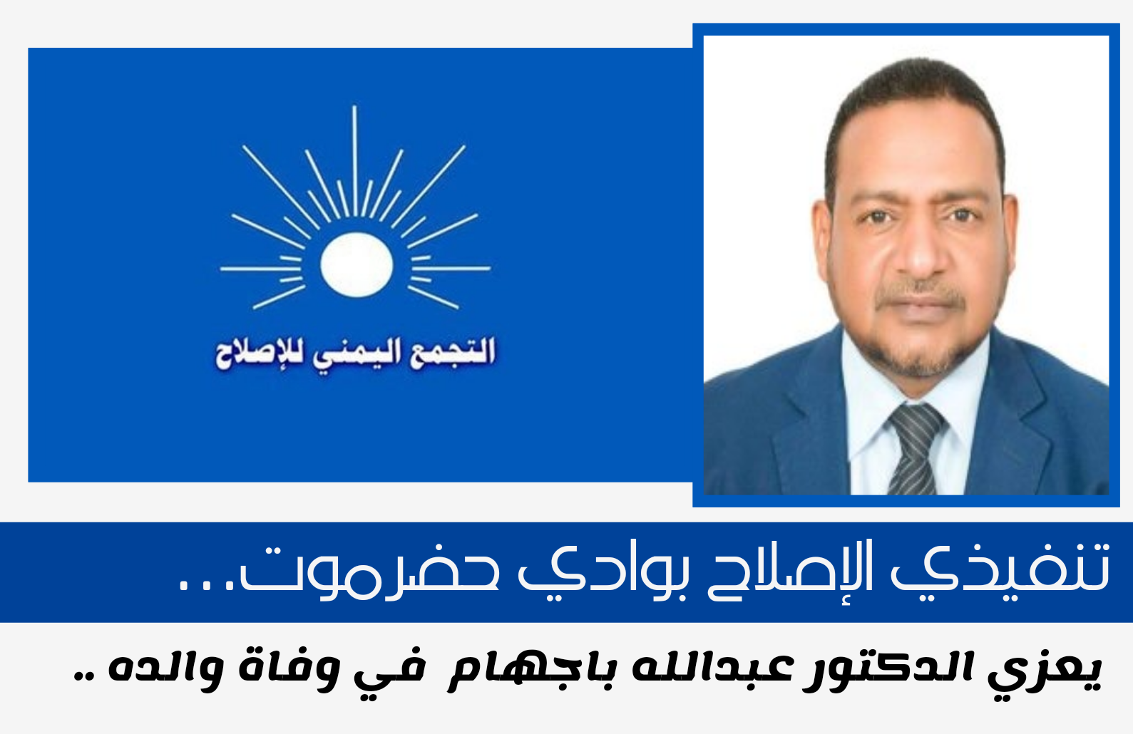 عزى المكتب التنفيذي للتجمع اليمني للإصلاح بوادي حضرموت، الدكتور عبدالله رمضان باجهام المدير السابق للشؤون