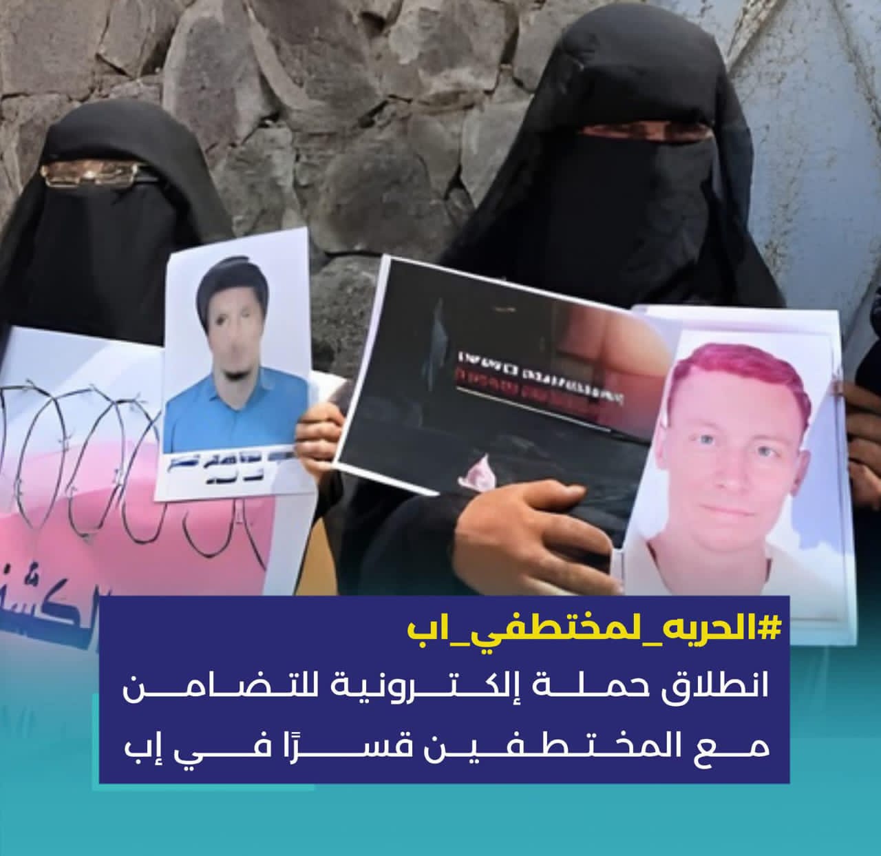 أطلق ناشطون حقوقيون وإعلاميون، مساء السبت، حملة إلكترونية واسعة تحت وسم *#الحرية_لمختطفي_إب*، تضامناً مع