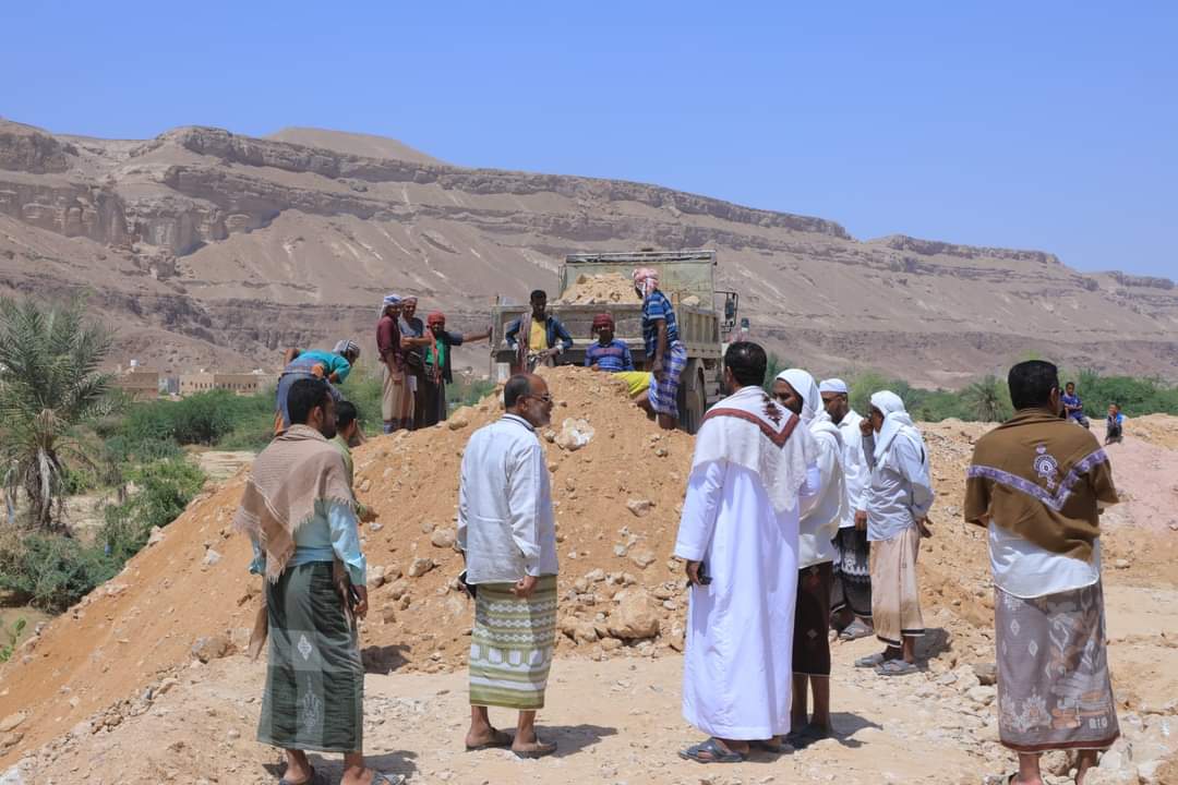 مدير عام مديرية تريم يتفقد الأعمال الجارية لحماية منطقة ثبي ويشيد بالجهود التي تقوم بها اللجنة المجتمعية