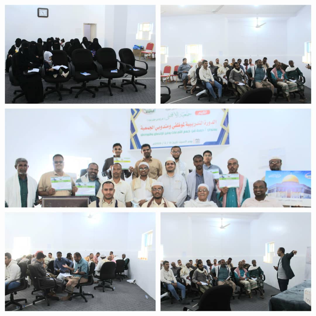 نظمت جمعية الأقصى، فرع وادي حضرموت، دورة تدريبية لموظفيها ومندوبيها والمتعاونين معها، تحت عنوان "فن جمع