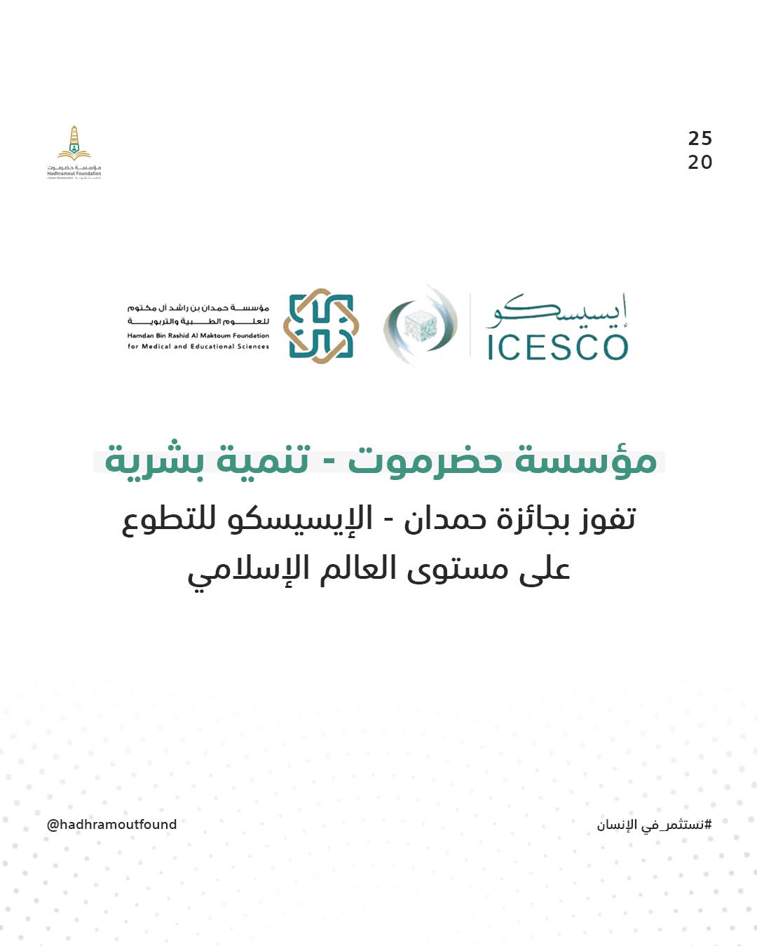 مؤسسة حضرموت تفوز بجائزة حمدان – الإيسيسكو للتطوع في تطوير المنشآت التربوية