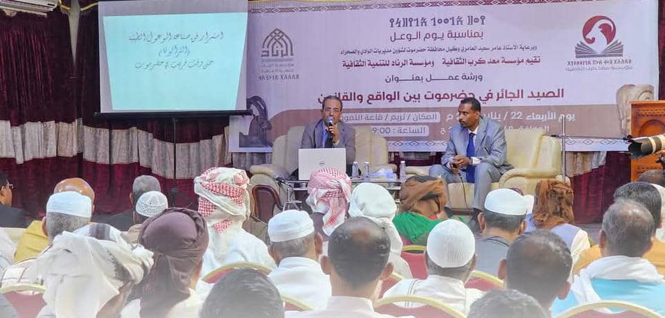 نظمت مؤسستا معد كرب الثقافية والرناد للتنمية الثقافية، اليوم الأربعاء، ورشة عمل بعنوان *"الصيد الجائر في