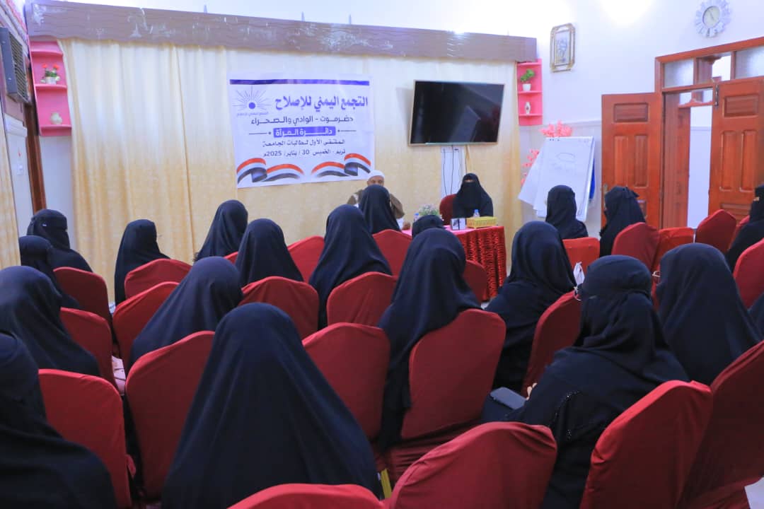 نظمت دائرة المراءة بالتجمع اليمني للإصلاح في وادي حضرموت، الملتقى الأول لطالبات الجامعة بمدينة تريم، بهدف