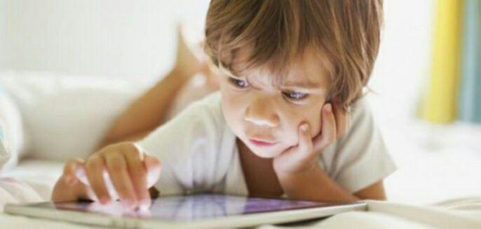 على تلكَ الكنبة يجلسُ ذلك الطفلُ، الذي لا يتجاوز عمرهُ السبعَ سنوات، يمسك بيديه ويقلب بصفحات ذلك الجهاز