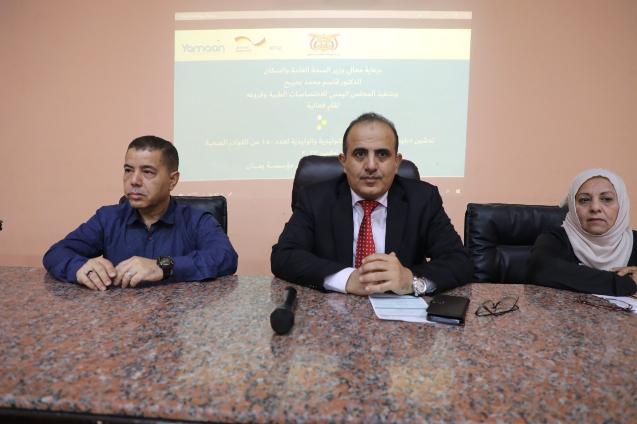 دشن وزير الصحة العامة والسكان الدكتور قاسم بحيبح بالعاصمة المؤقتة عدن مشروع دبلوم مساقات الطوارئ التوليدية
