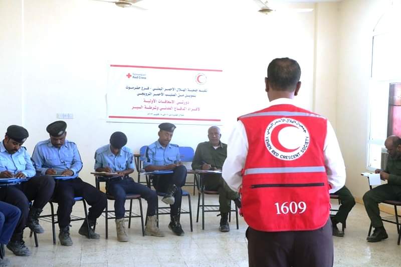 الهلال الاحمر اليمني بحضرموت يقيم دورتي الاسعافات الاولية لأفراد الدفاع المدني وشرطة السير بأمن حضرموت الوادي والصحراء.