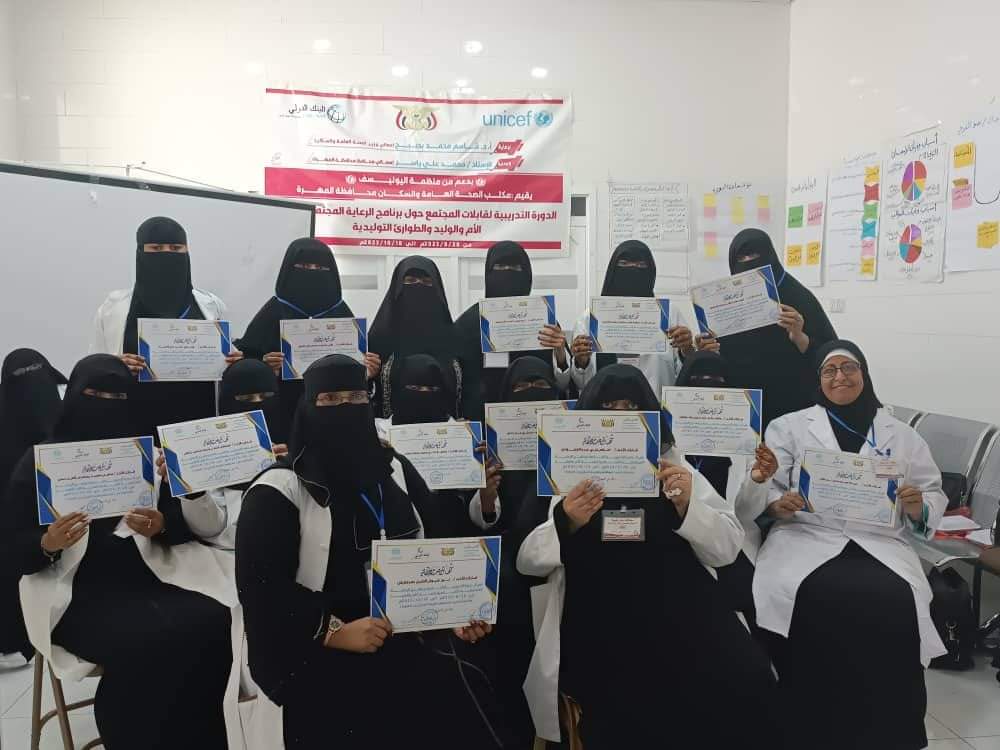 مكتب الصحة بالمهرة يختتم تدريب الدفعة الثانية من قابلات المجتمع في مجال الرعاية المجتمعية لصحة الأم والطفل