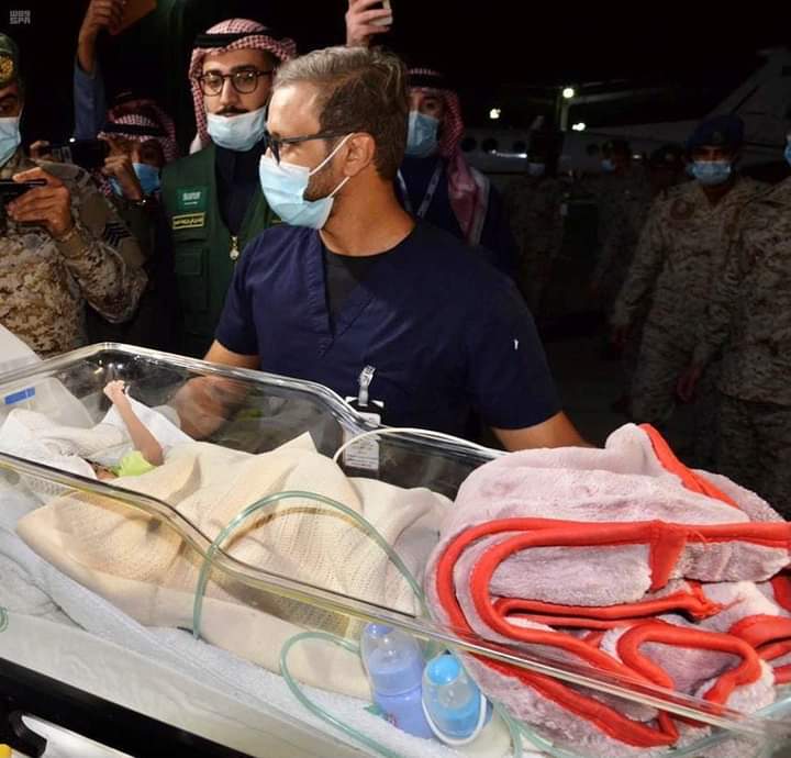 وصل التوأم الطفيلي اليمني "توأم أحمد سعيد محيمود" برفقة والديهما، إلى قاعدة الملك سلمان الجوية بالعاصمة