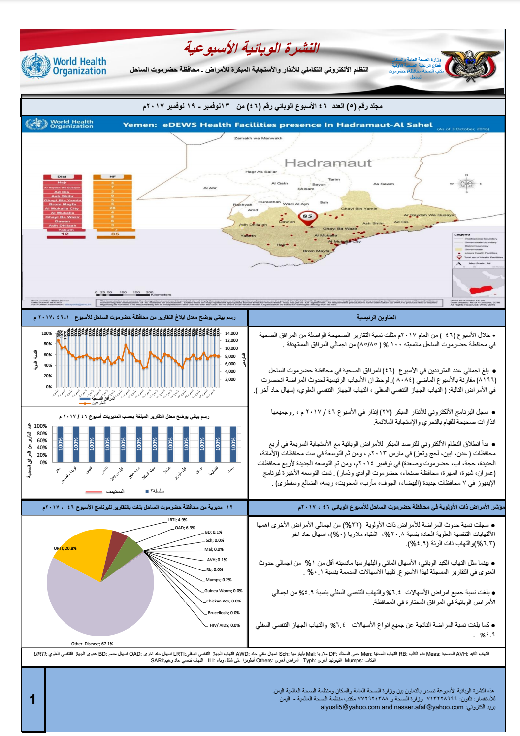 حضرموت اليوم // المكلا / مطيع بامزاحم أصدر مكتب الصحة العامة والسكان بساحل حضرموت العدد ( 46 ) من نشرته