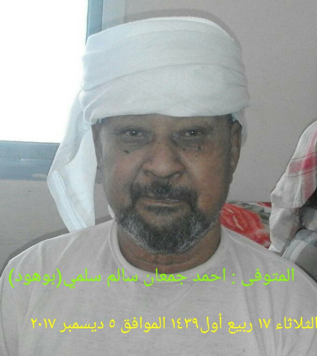 إنتقل الى رحمة الله : المعلم : احمد جمعان سالم سلمي ( بو هود) والتشيع الساعة الساعة السادسة والنصف مساء من