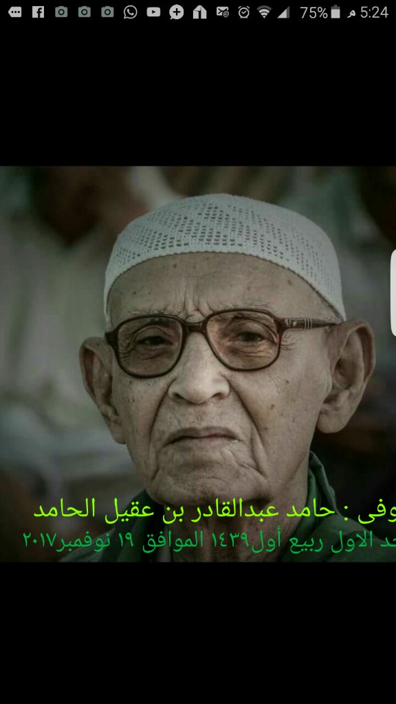 إنتقل الى رحمة الله : حامد عبدالقادر بن عقيل الحامد بن الشيخ أبوبكر بن سالم التشييع الساعة السابعة والنصف