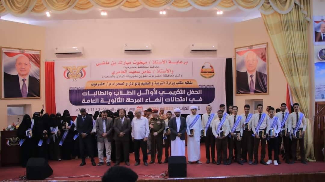 تربية وادي وصحراء حضرموت تكرم أوائل الطلبة في امتحانات انهاء المرحلة الثانوية للعام الدراسي 2022- 2023م