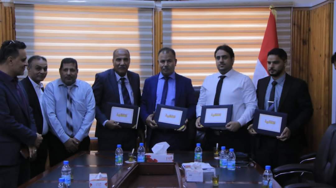 كرم وزير التربية والتعليم طارق العكبري، اليوم، عددًا من العاملين في فرع المؤسسة العامة لمطابع الكتاب