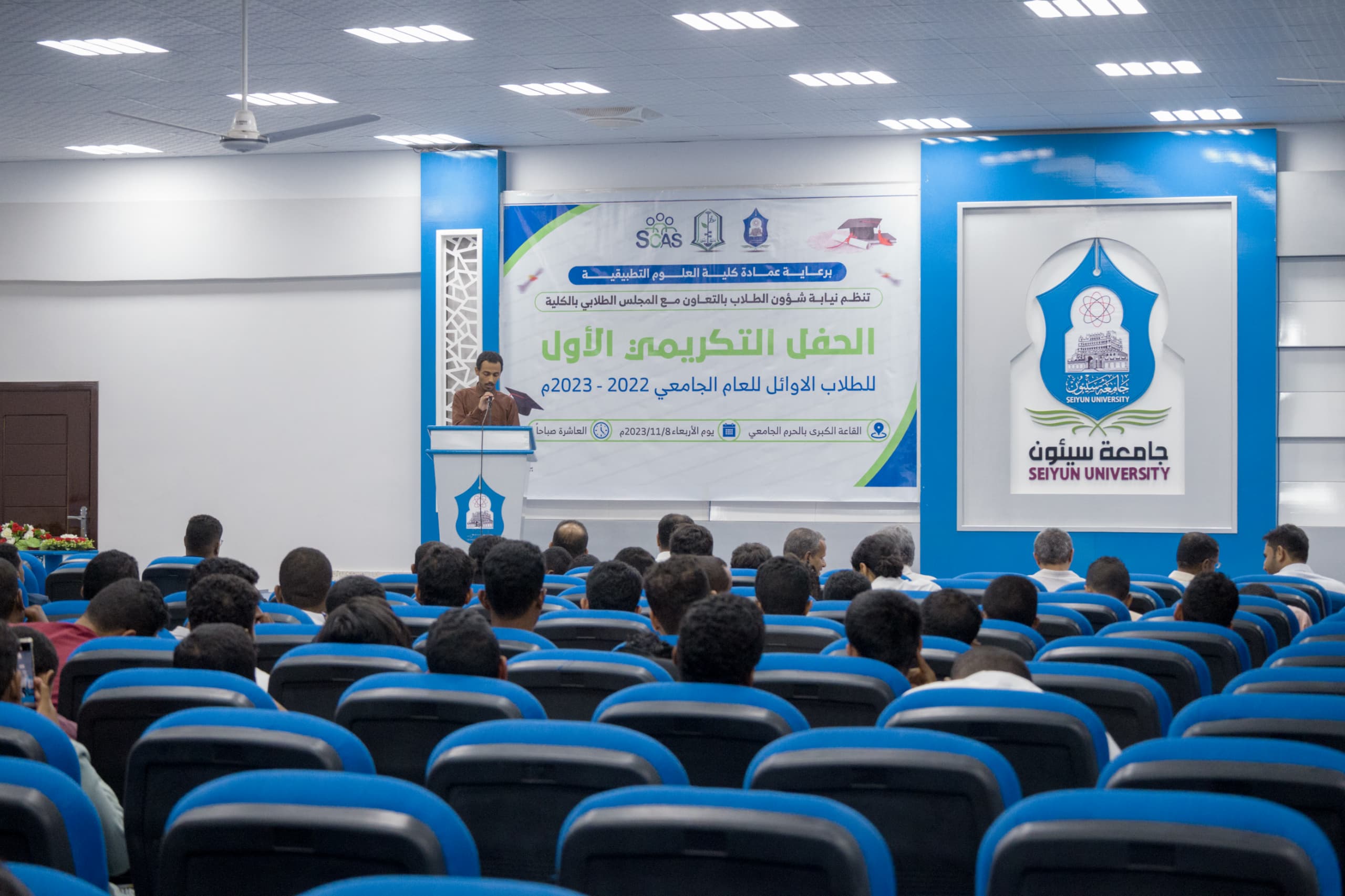كرمت كلية العلوم التطبيقية بجامعة سيئون اليوم أوائل الطلاب والمبرزين خلال العام الجامعي 2022 / 2023 بالقاعة