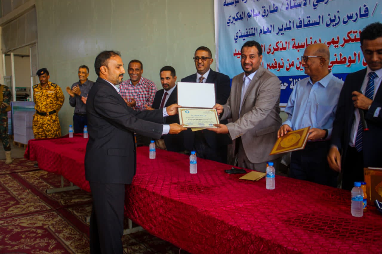 وزير التربية يكرم العاملين المبرزين بمطابع الكتاب المدرسي في حضرموت