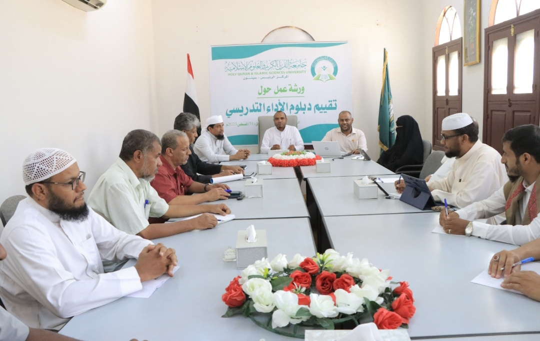عقدت جامعة القرآن الكريم والعلوم الإسلامية المركز الرئيس- سيئون ورشة عمل لتقييم دبلوم الاداء التدريسي