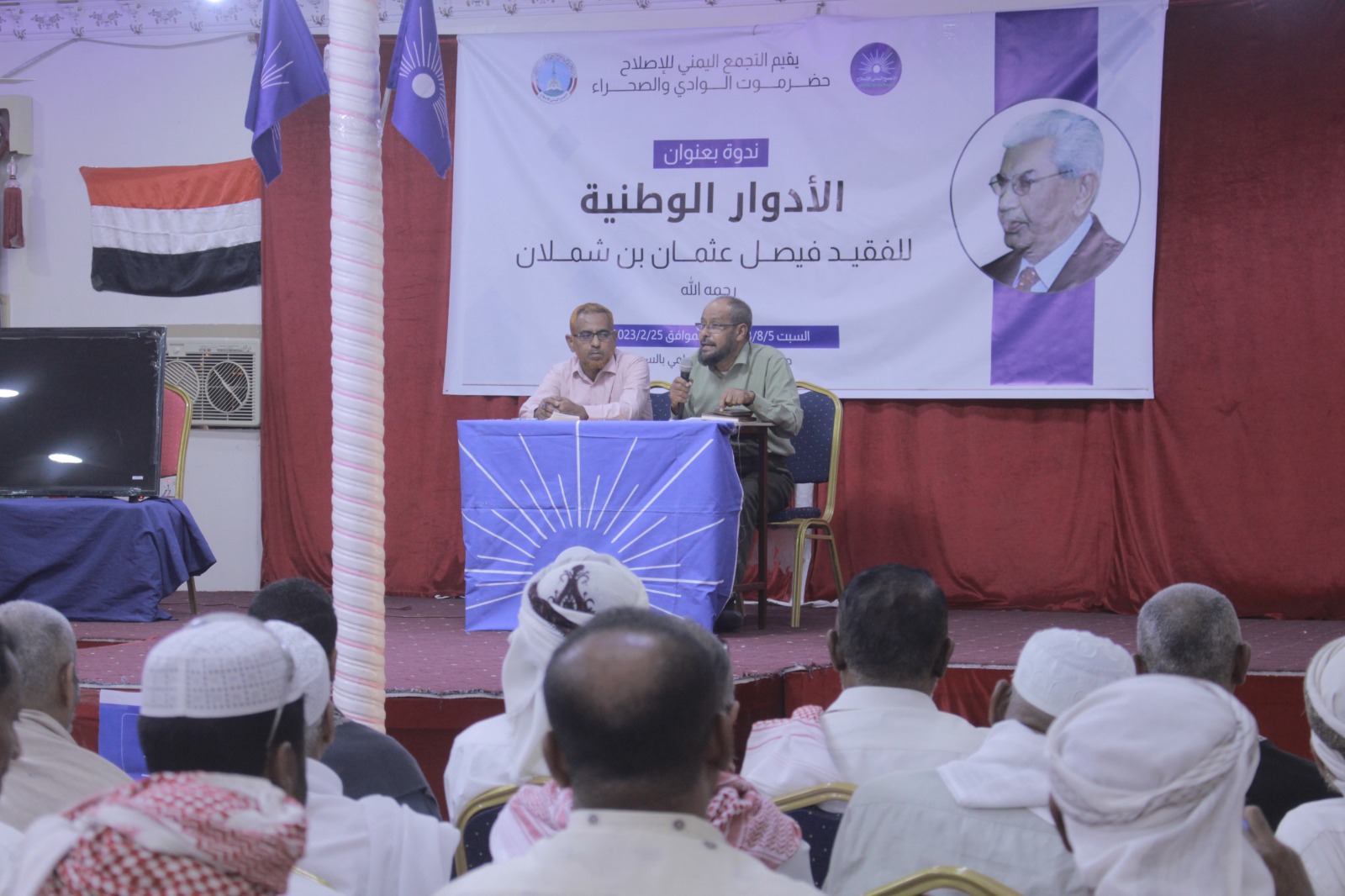 الإصلاح بوادي حضرموت ينظم ندوة بعنوان ( الأدوار الوطنية للفقيد فيصل بن شملان )