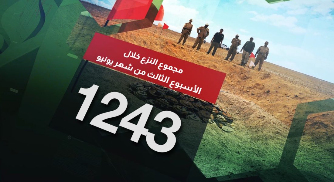 أعلن مشروع "مسام" لتطهير الأراضي اليمنية من الألغام، عن نزع 1,243 لغمًا وذخيرة غير منفجرة خلال الأسبوع
