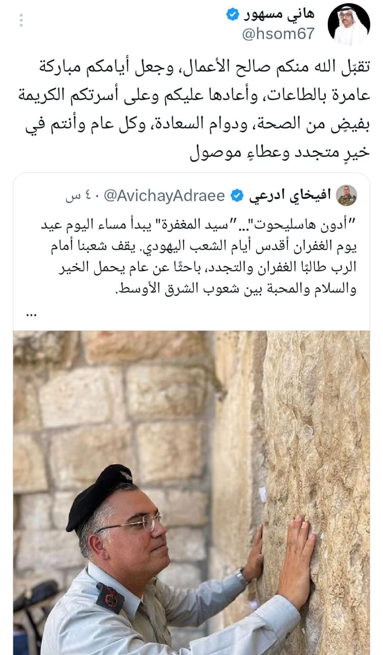 الناشط الإنتقالي هاني مسهور يهنئ متحدث جيش الاحتلال بـ"عيد الغفران".. وموجة غضب تجتاح منصات التواصل