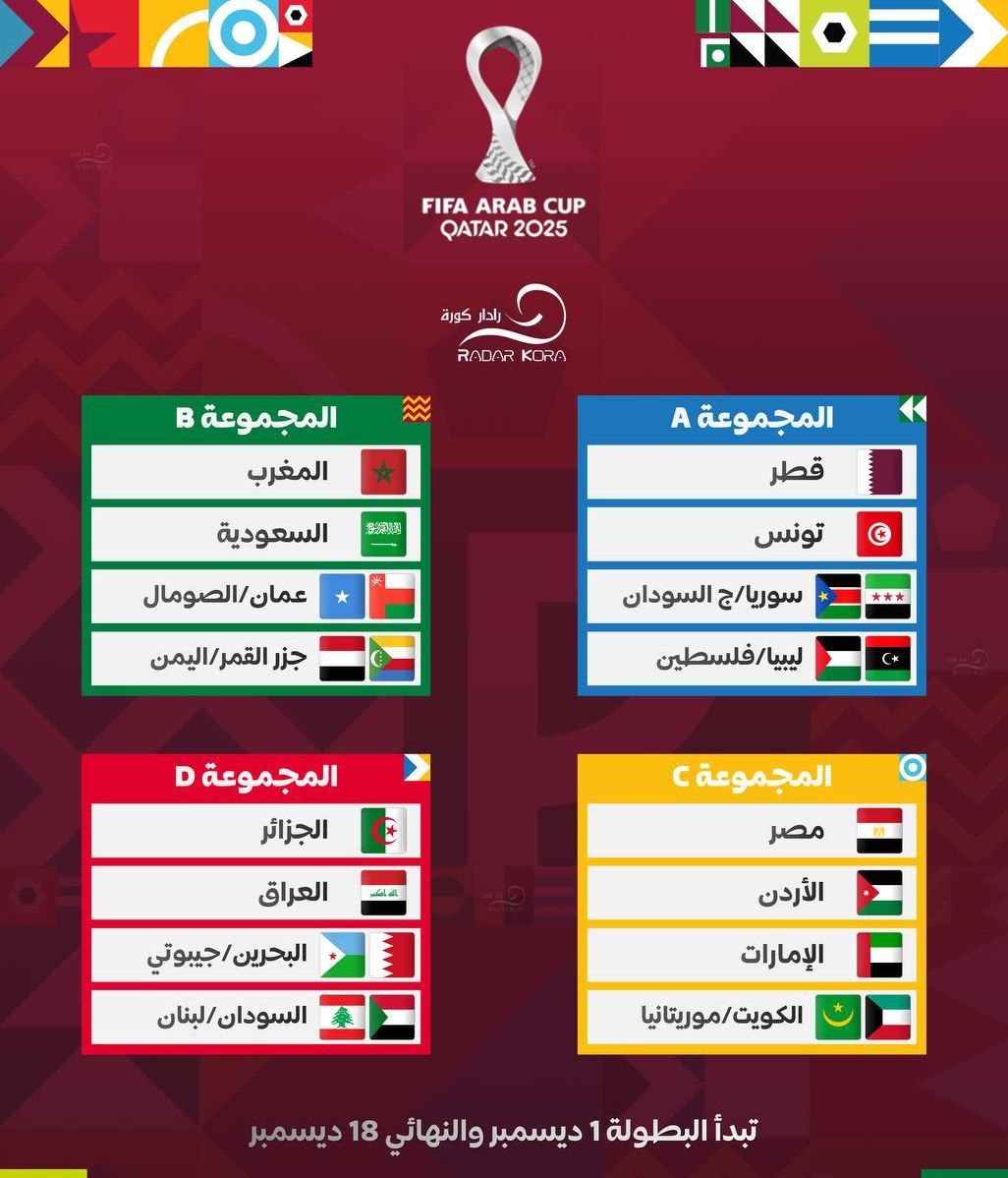 أُجريت قرعة بطولة كأس العرب FIFA قطر 2025، وأسفرت عن مواجهات قوية ومجموعات متوازنة. ينتظر المنتخب اليمني مباراة