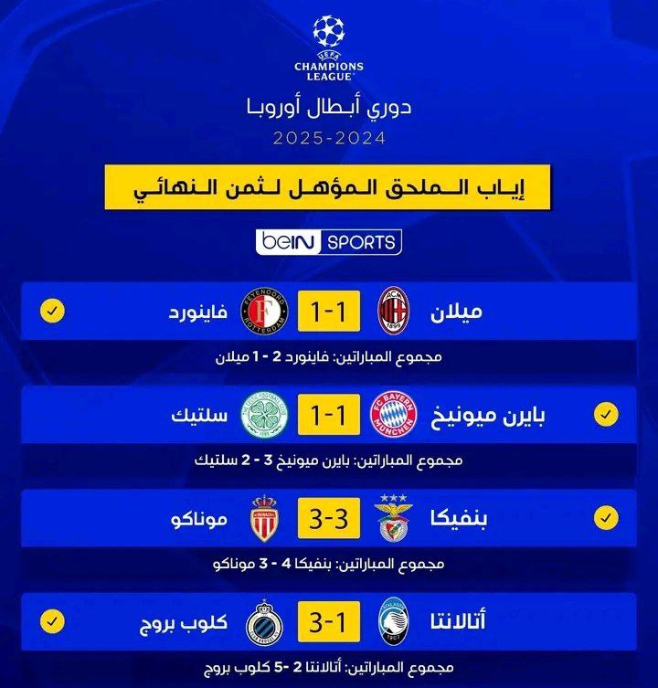 دوري أبطال أوروبا: بايرن ميونيخ وكلوب بروج وبنفيكا يتأهلون لثمن النهائي