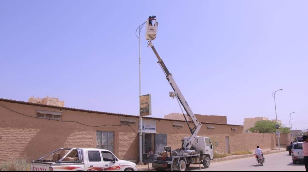 السلطة المحلية بالوادي تطلع على سير العمل في مشروع إعادة تأهيل إضاءة شوارع مدينة سيئون.