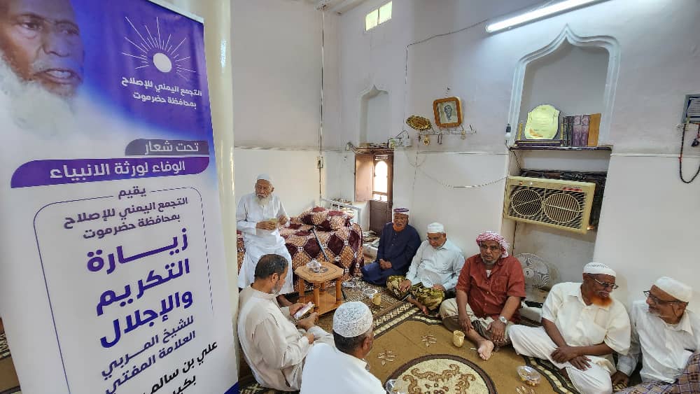 نظمت قيادة التجمع اليمني للإصلاح بمحافظة حضرموت، اليوم الثلاثاء، زيارة تكريم وإجلال للعلامة المفتي وعضو