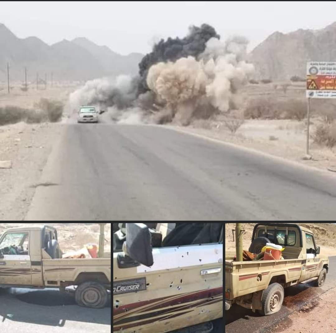قال مصدر أمني بمحافظة شبوة أن تفجير إرهابي بعبوة ناسفة استهدف صباح اليوم طقم تابع للقوات المشتركة بمنطقة